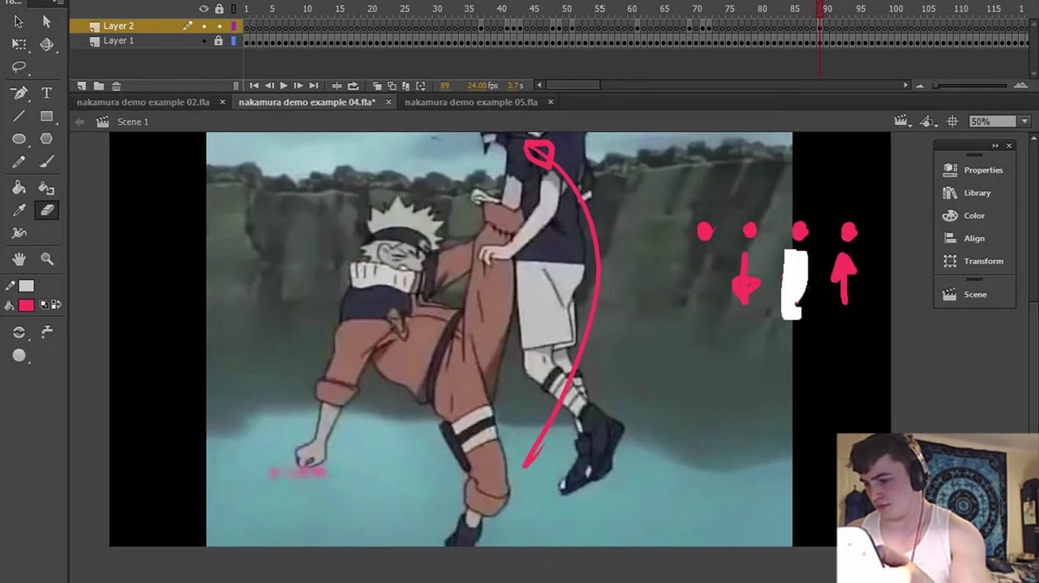 Check out this incredible analysis video by Howard Wimshurst on Naruto and Sasuke’s first fight if you really want a deep dive on sakuga from an animator’s perspective. As Wimshurst states in the video, Naruto animators would often “break the rules of physics” in order to emphasize the impact of punches, kicks, and special moves. The amazing thing is that when done by an expert hand, just like in jazz, breaking the rules actually creates something more beautiful and immersive than the “rules” ever could have produced in the first place.